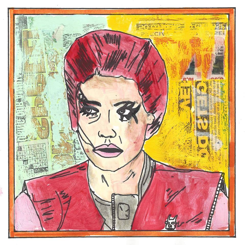 Linnea Quigley is an actress from Davenport, IA often referred to as a “scream queen” of the horror movie scene. Illustrated here as her most famous character Trash from the movie Return of the Living Dead.