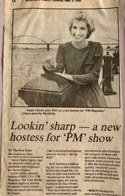 Then-Paula Gillette debuted on then-WOC TV-6’s “PM Magazine.” She would become Paula Sands, the station would become KWQC, and the show would become “Paula Sands Live.” And now you know… THE REST of the story…