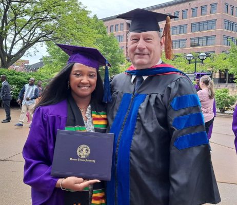 Aleah Pannell stands with WIU Engineering Professor Blair McDonald after graduating with a Bachelor of Science in Civil Engineering.