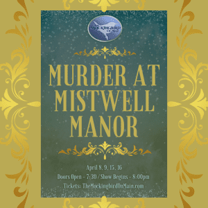 The Mockingbird on Main will present the premiere of the murder mystery, Murder at Mistwell Manor opening April 8! What seems like an ordinary paint by numbers murder mystery becomes much more with each new revelation! The doctor. The Hollywood starlet. The manor’s caretaker. The detective. And two dead bodies. Suspicions run wild as Detective […]