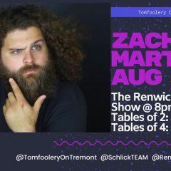 Tomfoolery On Tremont, 901 Tremont Ave., Davenport, presents ZACH MARTINA August 22 at 8pm. Tables of 2 are $24; Tables of 4 are $48. Thus far, life has exceeded the expectations of Zach Martina. He certainly never thought some stranger would be reading to find out more about him but here we are. Here’s what […]