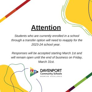 Tuesday, January 25, 2022, A Federal court decision ruled that a statewide injunction against the Iowa Mask Ban was a broader action than necessary. The case will now go back to the District Court for further review. As a result of today’s ruling, the Davenport Community School District will remove all universal mandatory masking requirements […]