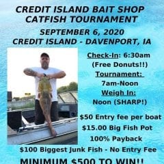 Show off your skills at the Credit Island Bait Shop (2304 W River Drive Davenport) Catfish Tournament this Sunday Sep 6! Check-in begins at 6:30 a.m. (with free donuts!). The tournament will get started at 7 a.m. and weigh-ins take place at 12 p.m. sharp. Entry fee is just $50 per boat and $15 for […]