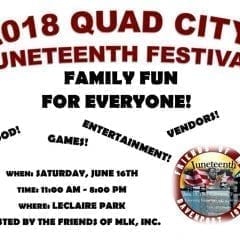LeClaire Park will be transformed into a Juneteenth Festival this weekend! Come celebrate Juneteenth at LeClaire Park (400 W Beiderbecke Dr. Davenport) this Saturday Jun 16 from 11:45 a.m. – 7 p.m.! Join the Friends of MLK for a day filled with family-friendly entertainment! Enjoy dance performances, gospel groups, Welcome Ceremony, and open-air market featuring […]