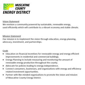 MUSCATINE – Climate is changing and demands for energy keep rising. Since October 2022, a group of local citizens have been meeting and planning for an organization to shine a light on a clean, bright future. Today they launched the Muscatine County Energy District, a not-for-profit organization dedicated to the development of energy solutions specific […]