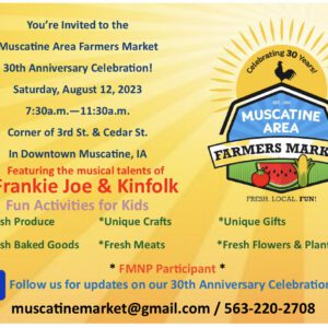 The Muscatine Area Farmers Market is inviting the public to check out their awesome event this weekend! The Muscatine Area Farmers Market runs every Saturday, May-October from 7:30am-11:30am on the corner of 3rd and Cedar in Downtown Muscatine. The market features homegrown produce, unique handcrafted gifts, local honey, delicious baked goods, food trucks and gorgeous […]