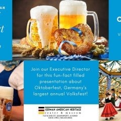 Don your Dirndl or Lederhosen, crack open your favorite beer, and virtually join the German American Heritage Center & Museum on Sunday Oct 11 from 2 – 3 p.m. for Oktoberfest by the Numbers. Oktoberfest by the Numbers is a fun-fact filled presentation about Germany’s largest Volksfest by Kelly Lao, Executive Director of the GAHC. […]