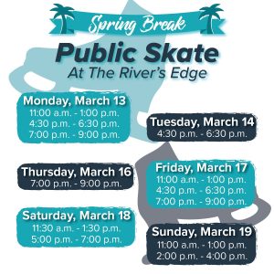 Get your skate on this spring break at The River’s Edge! Davenport Parks and Recreation has added a few more Public Skate hours this week! Admission is $5.50 and skate rental is $3.50.