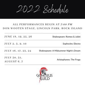 Outdoor theater is back in the Quad Cities this summer! Join the Genesius Guild as they open our 2022 season with a Shakespeare classic: Romeo & Juliet. This story is one of Shakespeare’s most well-known works. The play takes place in fair Verona, where the dueling Montagues and Capulets stand in the way of a […]