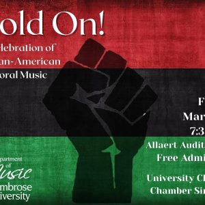 “Hold On! A Celebration of African-American Choral Music” hits the Ambrose stage March 11! The St. Ambrose University Chorale and Chamber Singers are pleased to present their winter concert, featuring music by African-American composers and arrangers, including a significant number of spirituals. This music, particularly the genre of African-American spirituals, represents the pinnacle of American […]