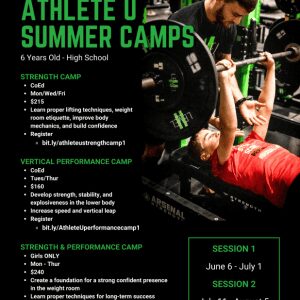 Just a few more days of school remaining! What is your athlete doing this summer to become faster, stronger, and more durable? If you have not signed your athlete(s) up for one of our Athlete U Summer Camps, NOW is the time to do so! We will have 3 different camp options this summer to […]
